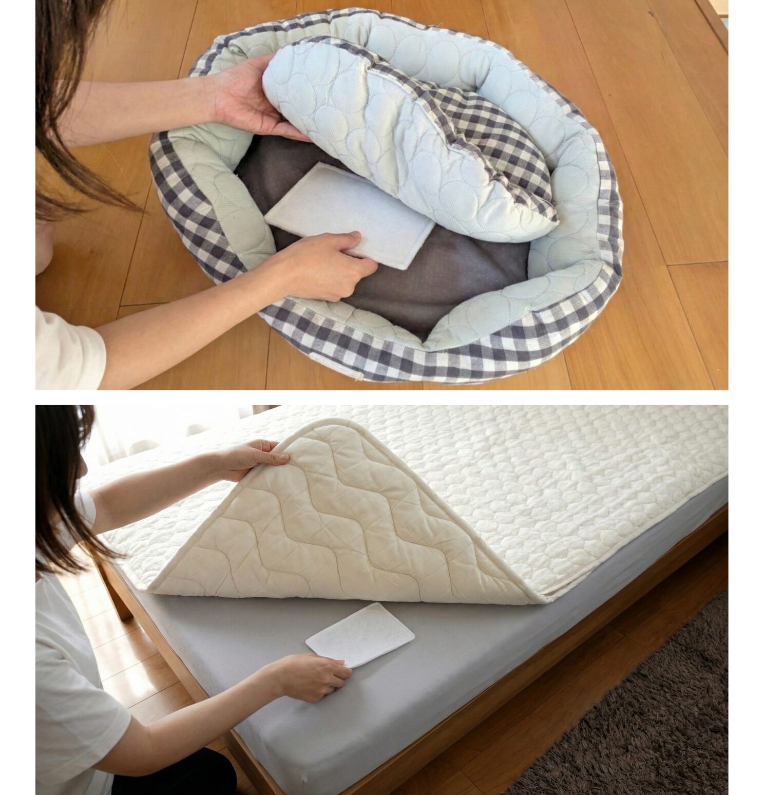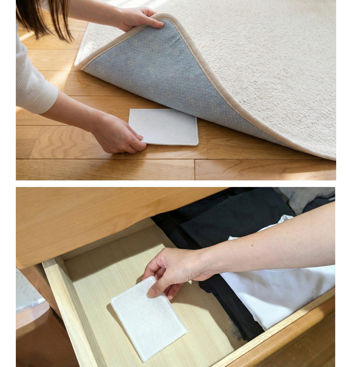 アルミ袋から取り出し、ダニが集まりやすいベッドやソファ、カーペットの下などに設置してください。